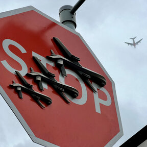От понеделник шаблонни силуетни изображения на коза, слонове, маймуни, вълк, пеликани и котка се появиха на различни места в Лондон.