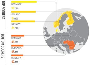 Под нас от страните от ЕС е само Унгария - с 41 точки.