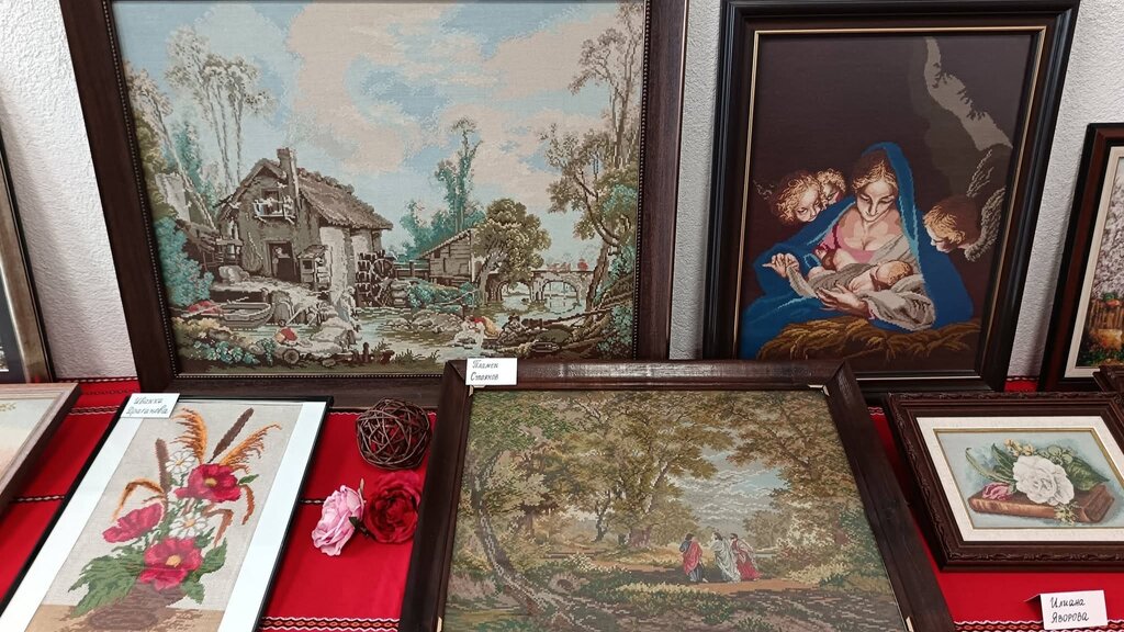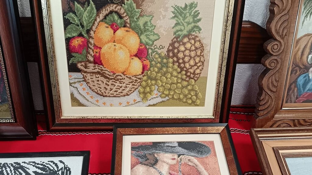 Те включват традиционните ръчно шити изображения, актуалните напоследък "диамантени" гоблени и рамкирани пъзели, подредени като картини.