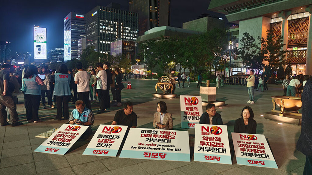 След вечеря се разходихме из храма и, както си бяхме с монашеските одежди, отскочихме до близкия булевард, където имаше протести. Организирани, спретнати, мирни. Полицейските автобуси охраняваха протестиращите срещу експанзионистичната политика на Тръмп спрямо Корея. Прилични сериозни хора, на средна възраст, клечаха зад плакатите си, насочени към американското посолство. Служителите на реда бяха готови да реагират всеки миг при появата на безредици и приличаха на герои от научно-фантастичен филм с Шварценегер – огромни, целите накичени с всякаква техника и с бързо разтягащи се светещи барикади под ръка. А наоколо неангажираните с протеста младежи с безалкохолно в ръка се мотаеха около паметника на крал Седжон, създателят на корейската писменост хангъл и нехаеха за политиката.