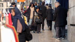 Хора минават покрай билборд, изобразяващ бившия командир на силите "Ал-Кудс" от Корпуса на гвардейците на ислямската революция (IRGC) Касем Солеймани в центъра на Техеран, Иран, 6 януари 2026 г.